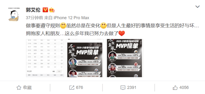 公开喷CBA规则+回应落选MVP候选人!郭艾伦晒图怒斥:规则一直在变!