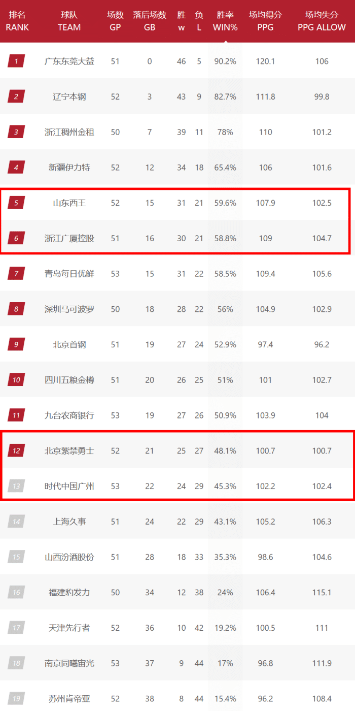 第12的争夺同样与新疆队有关,10日的比赛,广州击败吉林,吉林轮休了琼斯和姜宇星,郭士强拿到关键一胜,他们还有追赶北控的机会。广州最后一场打新疆,必须赢球才能有希望超越北控,而北控的两个对手是辽宁和青岛。如果北控赢下任意一场,广州就彻底没机会,如果北控两练败,广州击败新疆,那么广州就以胜负关系的优势反超北控,可以说多队形成了连环局面。