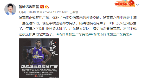来源:JRS直播网04-05 19:31JRS直播网讯“汤普森加盟广东男篮”,昨晚这个话题直冲热搜榜!
