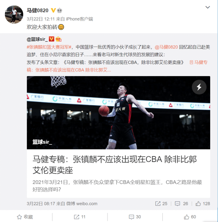 来源:JRS直播网03-24 12:10JRS直播网3月24日讯 ,国内篮球名嘴同时也是昔日NCAA第一位中国球员马健老师,在自己的个人社媒专门写了一篇文章来评价张镇麟!