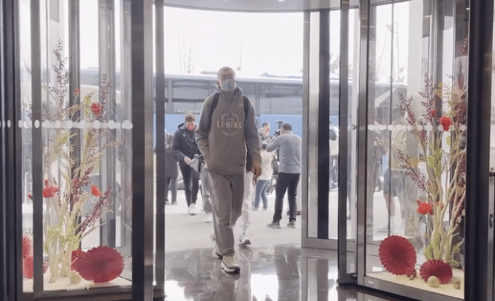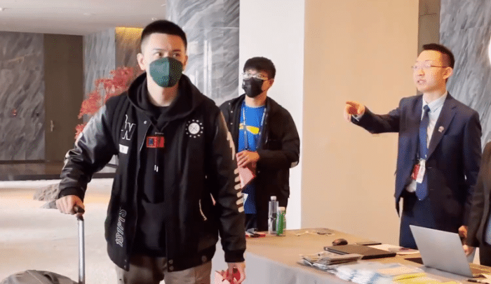 辽篮主帅杨鸣指导抵达CBA全明星周末的下榻酒店,他闲庭信步,看起来还是很惬意的。镜头中还有沈梓捷等人,他们都陆续从前台那里领取了自己的物品,然后准备坐电梯去到各自的房间。