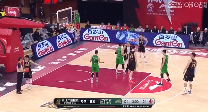 与广厦比赛进行至末节尾声阶段,场边收声系统中,屡次传来了不和谐的声音。冯欣被裁判吹罚技术犯规,场边有位不明身份女子大声咆哮道:“他没喊呐!”,并把矛头指向郭艾伦。随后下个回合,郭艾伦在突破中造成广厦球员犯规并随即倒地,该女子却咒骂道:“摔死你!”