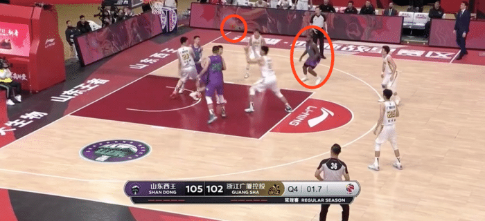 经过回放,我们能够看到许钟豪拿到球的时候只剩下1.6秒,即便是既定的战术,接球后反应的时间大概是0.3秒左右,再加上将球回传给外线的赵岩昊,球在空中至少需要走0.7-1秒,最后还有赵岩昊完成投篮的时间,这次进攻大概率会超时,而且值得一提的是,许钟豪拿到球的时候是背对着赵岩昊的,如果再加上转身传球,这次进攻超时将成为必然。