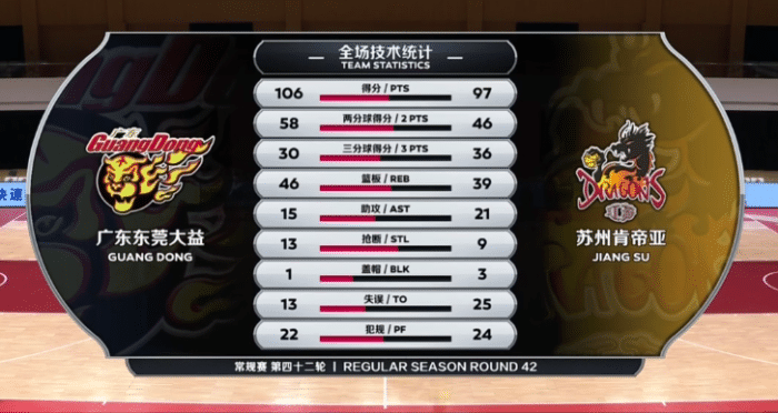 来源:JRS直播网03-06 10:18JRS直播网3月6日讯 今天晚上CBA常规赛结束了一场焦点战,超长连胜的广东对阵超长连败的江苏,本来这是一场胜负悬念不大的比赛,不过比赛过程却惊心动魄。上半场广东领先11分,其中还有杜锋怒摔战术板,下半场江苏在史鸿飞。吴冠希和威尔斯的带领下逐渐爆发,末节将分差缩小到3分,不过老将周鹏和超级外援马尚带队稳定住局面,成功的以106-97拿下胜利。布鲁克斯33分8板4助是广东赢球的最大功臣,吴冠希22分10板、威尔斯20分6板8助和史鸿飞24分6助,全部空砍。