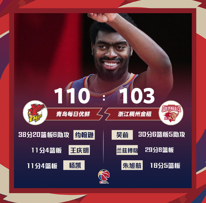 青岛110-103战胜浙江 达卡里38+20+5 吴前30+6