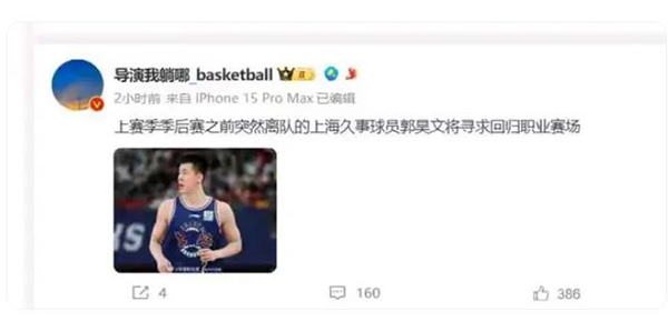 想要朱松玮很难,不过广东男篮这边也是传来了好消息,根据知名篮球媒体人“导演我躺那”报道上赛季犯了事离开了上海男篮的郭昊文正在寻找机会回归。相对于朱松玮,郭昊文可是自由之身,这符合广东男篮抠抠搜搜的签约风格。而且对于00后的郭昊文来说,广东男篮可能也是他获得自我救赎的最好地方,而广东男篮则可以通过抢签郭昊文帮助球队解决锋线短板,要知道郭昊文攻防和组织能力还是不错的,这笔交易值得期待。