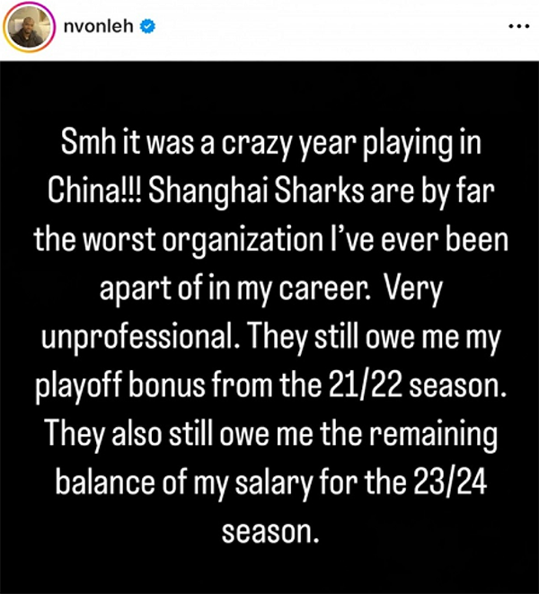 冯莱解释,称上海男篮拖欠自己的工资和奖金,在伤病层面造假,希望医生撒谎,目的是为了让自己复出。还有终止合同层面,冯莱表示球队在自己受伤期间,让医生撒谎,只为让自己出场,而且还多次找茬,想要终止合同,后期CBA联盟认定上海错了,不应该终止合同,因为自己每天都参加训练。