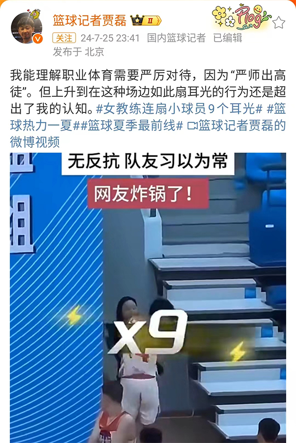 在这个事情上了热搜之后,多个篮球媒体人也是站出来报道,名记贾磊也是透露了嘴型情况表态:我能理解职业体育需要严厉对待,因为严师出高徒,但上升到在这种场边扇耳光的行为还是超出了我的认知。