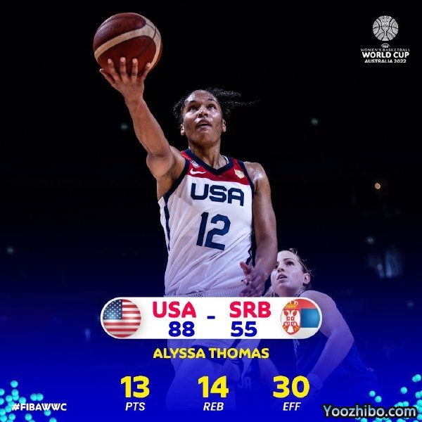 美国女篮:格雷8分3助攻2抢断,洛伊德8分2篮板 2助攻,斯图尔特2分8篮板3助攻,托马斯13分14篮板7助攻3抢断,威尔逊15分8篮板2封盖,普拉姆17分2篮板4助攻,阿特金斯7分,琼斯4分5篮板,库珀2分,奥斯丁2分3篮板,约内斯库7分2篮板,莱尼3分
