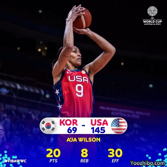 JRS直播网讯:北京时间9月26日消息,2022年国际篮联女篮世界杯继续在澳大利亚悉尼进行,中国队同组的美国女篮今天145-69狂胜韩国队,四连胜继续领跑A组。