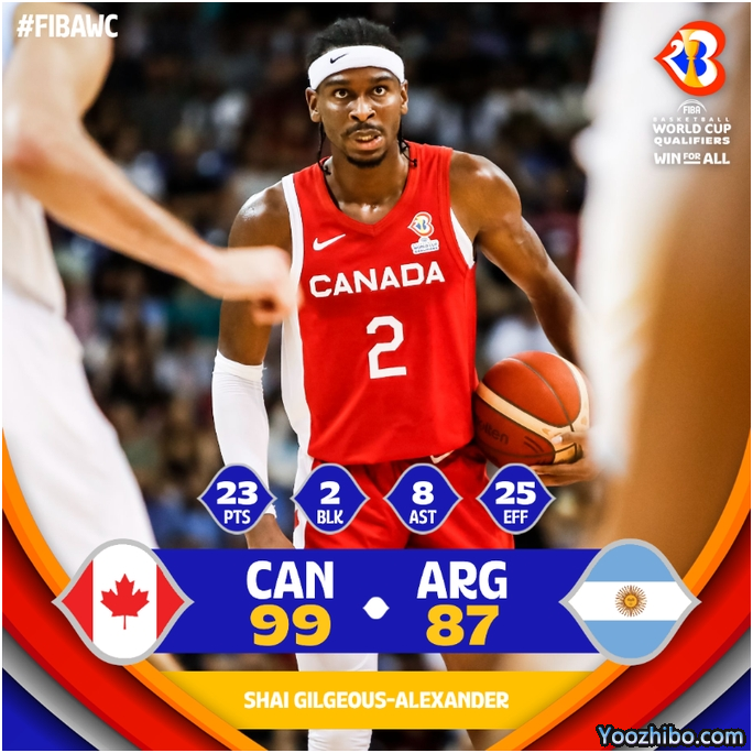 JRS直播网讯 08月26日讯,在今日,男篮世界杯美洲区预选赛的一场加拿大对阵阿根廷的比赛已经结束了,加拿大最终以99-87的最终比分战胜了阿根廷。