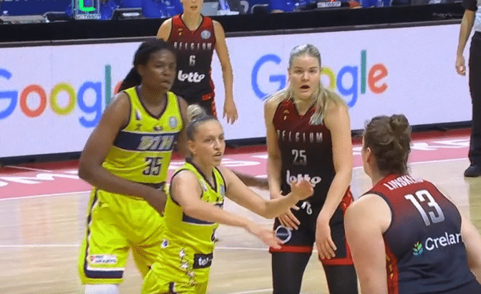 第二节的比赛,波黑队将分差缩小到了3分,但是此后球队连续失误被对手拿到4分,范洛三分命中,分差来到了10分,艾雷兹三分命中帮助波黑止血,范洛连续杀内线得分,比莉-梅西造犯规两罚全中,半场比赛打完的时候,比利时37-22波黑,上半场的比赛比利时这边范洛10分、阿莱曼德7分,波黑这边归化的WNBA的MVP琼斯只得到了3分,并且出现了4次失误。