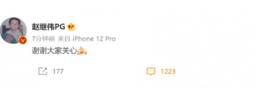 赵继伟在社交媒体上发文报平安,称:“谢谢大家关心”