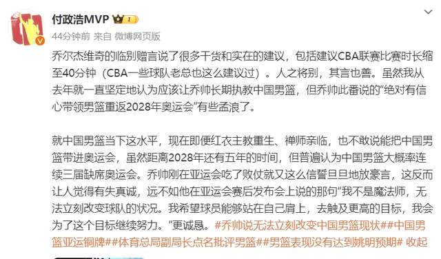 曝乔尔杰维奇将下课!遭高层点名批评 姚明力挺无用,恐自身难保