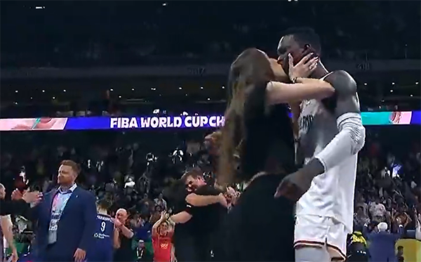 来源:JRS直播网09-11 10:53JRS直播网09月11日男篮世界杯落下帷幕,德国队以8战全胜的战绩夺得冠军,实至名归。德国队斩获队史上首座世界杯冠军奖杯,施罗德是最大的功臣,他不仅在决赛中打进制胜球,同时还当选本届男篮世界杯的MVP,赛后他的爱人冲入球场,与施罗德拥吻在一起。