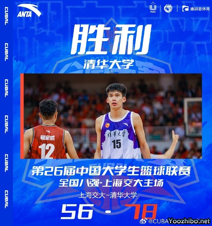JRS直播网讯 6月9日讯 CUBAL大学生篮球联赛全国8强,上海交大主场迎战清华大学。比赛开始,清华大学比较慢热,打了4分钟才靠造杀伤拿得首分,上海交大则是打出8-2开局,双方进攻端状态都很慢热,刘冠男2+1后石奎回应三分,首节上海交大领先2分,次节双方命中率还不是很高,清华大学接连3记三分咬住比分,石奎苦苦支撑,顿家威和吴泽昊撑起上海交大进攻,半场上海交大领先5分。下半场,杨曦皓接连外线3记三分,个人连砍12分帮助清华大学建立主动权,随后杨曦皓又接连扔进三分,清华大学单节36-11直接拉开20分领先,末节上海交大止血但隰泰诚里突外投回应,杨曦皓三分还能进,清华大学牢牢掌握住20分以上领先,最终清华大学78-56大胜上海交大。
