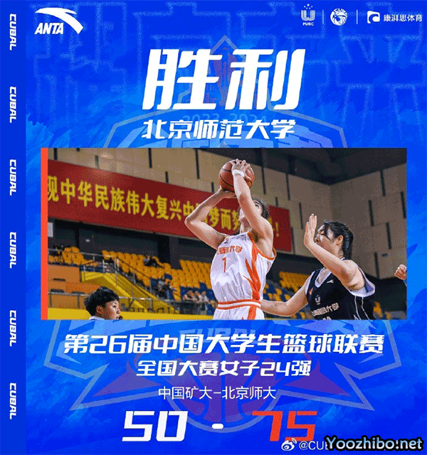 JRS直播网讯 6月11日讯 CUBAL全国大赛女子组,北京师大对阵中国矿大。一开场,北京师大率先发力,连投带罚打出6-0的开局,王珍替补登场上篮破荒,北京师大连中三分将分差拉开到两位数,张笑连续补篮得手独得7分帮助球队扩大优势,首节结束北京师大21-6大比分领先中国矿大。第二节,两队围绕15分的分差展开拉锯战,北京师大强攻内线,中国矿大连投带罚,李欣彤三分穿针,李青阳2+1迅速回应,北京师大持续发力扩大优势,中国矿大不断冲击篮筐苦苦支撑,半场战罢北京师大38-24领先。下半场,双方经历了3分多钟的得分荒,张茂反击上篮打破僵局,赵晟初飙中三分,北京师大频频杀入内线连中三球将分差拉开到20分以上,刘晓君三分止血,中国矿大连投带罚稍稍缩小分差,三节打完北京师大50-34握有16分优势。第四节,北京师大进攻回暖,内外开花打出11-2的攻击波再度将分差拉开到20分以上,中国矿大连续打铁失误,北京师大持续发力将优势扩大到30分以上,最终,北京师大75-50大胜中国矿大。
