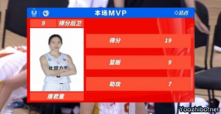 北京大学:唐君童19分9板7助3断2帽,王家绘13分12板6助,李美潼8分5板5助,王滢6分6板,王雨桐9分