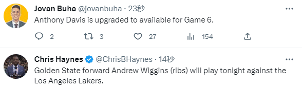 湖勇G6首发出炉:湖人变阵施罗德首发搭档詹眉 浓眉维金斯带伤出战