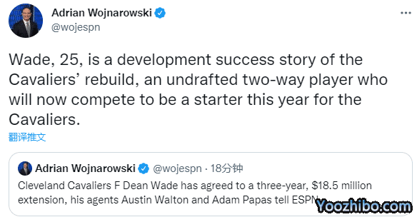 在今年6月底,骑士已经执行迪恩-韦德最后一年价值193万美元的球队选项,新赛季迪恩的年薪是全额保障的193万美元;如今迪恩获得一份3年1850万美元的肥约,平均年薪超600万美元。