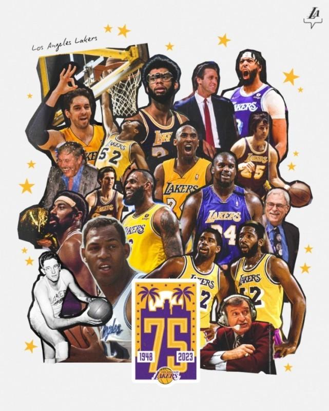 9.湖人计划在新赛季庆祝75周年湖人官方社媒晒出了一张队史球星与重要人物的合成图并写道:“致敬传奇,致敬冠军,致敬传承。新赛季我们将庆祝湖人队的75周年!”湖人队在1948年加入NBA,当时在明尼阿波尼斯,1960年搬迁到了洛杉矶,并正式改名为洛杉矶湖人队。
