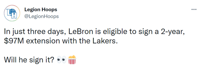 詹姆斯一方也存在不确定性,虽然他也有资格和湖人提前续约,但这位超级巨星未必会这么做。他的面前有三个选择——