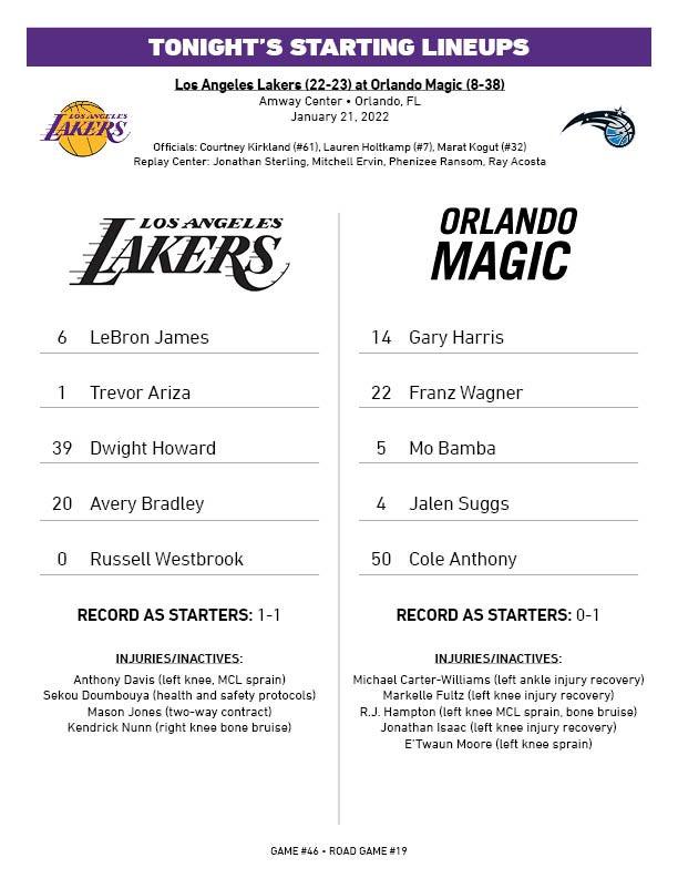 来源:JRS直播网01-22 16:16JRS直播网01月22日讯 ,湖人正式开启东部六连客,湖人今日对阵魔术的首发五虎是詹姆斯、威少、霍华德、阿里扎和布拉德利,连续三场使用这样的首发阵容,老魔兽重返奥兰多,继续担任湖人首发中锋。