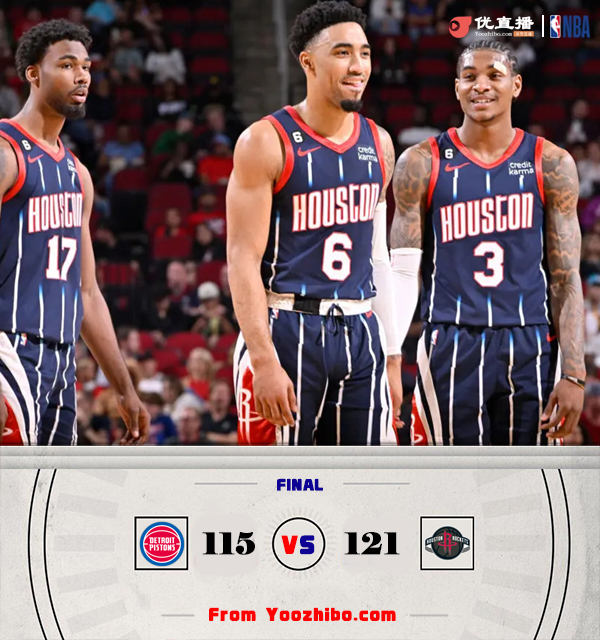 火箭:小波特33分3篮板4抢断,杰伦-格林32分5助攻,史密斯13分11篮板2帽,小马丁15分6篮板,申京15分13篮板7助攻,伊森5分10篮板2抢断,马杨诺维奇2分,克里斯托弗4分3抢断,尼克斯2分。
