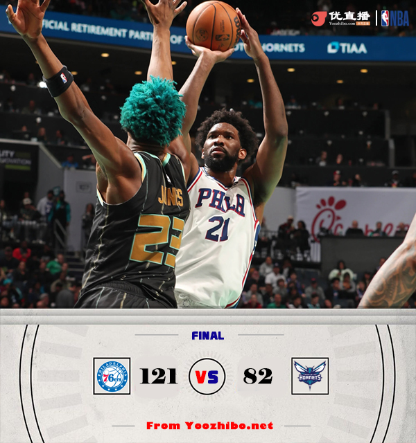 JRS直播网3月18日讯 NBA常规赛,黄蜂今日迎战76人,前者三连败后排在东部倒数第二位,后者则是三连胜暂列东部第三位,此役马丁和马克-威廉姆斯缺战。比赛上来,两队就陷入到拉锯战,场上比分交替领先,次节前半段黄蜂依旧能够与对手保持胶着,但之后76人突然发力占据场上主动,分差也是逐渐拉开到了两位数,半场结束时黄蜂落后12分;下半场回来黄蜂直接断电,前四分钟时间里一分未得,76人趁势一波11-0的小高潮将分差扩大到二十分以上,末节上来76人再轰13-0后分差突破了三十分,比赛彻底失去悬念,最终76人大胜黄蜂迎来四连胜。