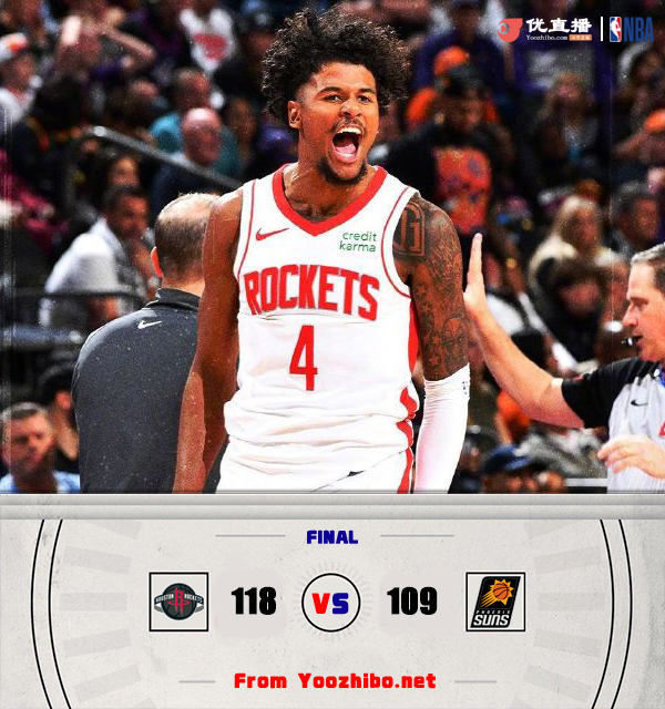 JRS直播网3月3日讯 NBA常规赛太阳主场迎战火箭,太阳目前排在西部第五,最近取得2连胜,火箭则仅排在西部第十二,最近遭遇3连败,本场比赛比尔复出先发登场。比赛开始后没多久杰伦-格林和范弗里特就展现出火热手感,在他们带领下火箭首节就建立起19分优势,太阳外线手感冰凉,第二节火箭的轮换阵容打得不好一度被太阳追到只差6分,杰伦-格林回来后帮助火箭稳住阵脚。下半场两队大打对攻战,场上分差一直在10分左右徘徊,比尔和杰伦-格林发生冲突吃到2次技术犯规被驱逐,最后一节太阳多次迫近比分但关键时刻火箭总能及时回应,太阳未能完成翻盘,临近比赛结束前布克也崴脚返回更衣室,最终火箭118-109力克太阳结束3连败。