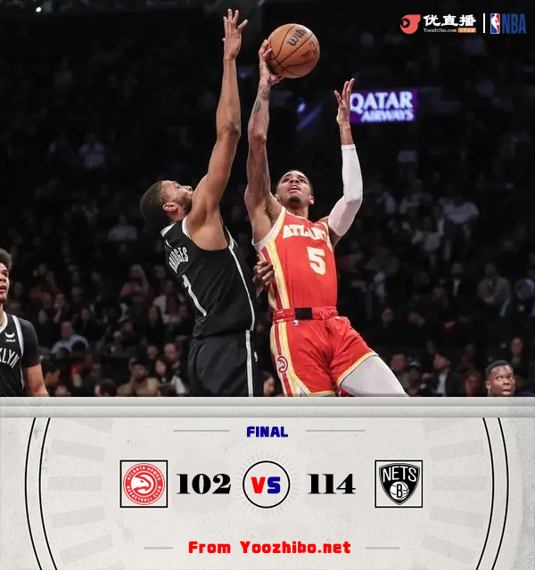 JRS直播网3月3日讯 NBA常规赛,篮网主场迎战老鹰。篮网东部第十一,老鹰东部第十。上半场,老鹰反客为主率先发力,连中三分取得两位数领先,篮网连投带罚拿分追赶,次节老鹰连中三分重获两位数优势,布里奇斯挺身而出单节拿到15分帮助球队迅速缩小分差,半场战罢老鹰62-60领先篮网。下半场,篮网率先发力打出15-2反超比分,老鹰连投带罚拿分止血,末节篮网持续发力扩大优势,老鹰大势已去无力回天。最终,篮网114-102击败老鹰,主场过关。
