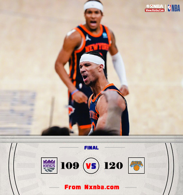 JRS直播网4月5日讯 NBA常规赛,尼克斯今日迎战国王,前者近来情况不佳遭遇三连败,后者则是取得两连胜,此役蒙克和阿努诺比缺战。比赛上来,两队短暂拉锯后国王一波小高潮将分差拉开到了两位数,整个第一节尼克斯只拿到20分,次节国王迅速将分差扩大到二十分以上,但之后他们的命中率急剧下滑,尼克斯在布伦森的带领下打出一波16-2的攻势,半场结束时国王领先8分;下半场回来,尼克斯继续发起反扑,迪文岑佐节末外线连续出手成功帮助球队实现反超,末节双方一直保持拉锯,但随后哈特和布伦森联手打出一波13-0的攻势拉开分差,最终尼克斯21分逆转国王结束三连败。