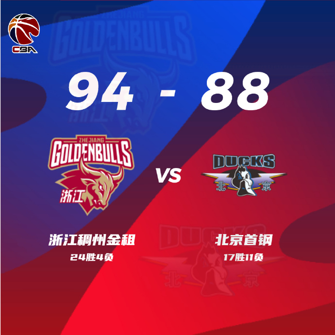 JRS直播网1月18日讯 CBA常规赛第二阶段进入尾声,浙江对阵北京,浙江目前23胜4负高居积分榜榜首,而北京最近状态不佳,3连败后17胜10负排在第6位。上半场双方命中率并不是很高,浙江队吴前手感不佳,但好在其余队友能给予进攻端的帮助,而北京队更是不在状态,首节只拿到16分,次节依靠约翰逊的强打北京一度反超比分,但浙江迅速调整,多点开花都能得分还是稳住领先。下半场,双方进攻端终于有起色,方硕、曾凡博联手翟晓川砍下18分帮助北京直接追平比分,随后双方命中率又有回落,但是展开胶着拉锯战,浙江通过外线三分重新反超并拉开比分,吴前连续失误又给北京机会,好在摩西-赖特关键抛投打进后又快下暴扣锁定胜局,最终浙江94-88力克北京,拿到3连胜的同时送对手4连败。