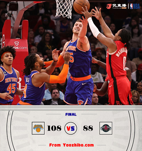 JRS直播网1月1日讯 火箭今日坐镇主场迎战尼克斯,火箭最近8场比赛输掉7场,仅仅在客场击败公牛“稳坐”西部副班长位置;尼克斯在经历一波8连胜后近期遭遇5连败。首节之争两队上演进攻端对决,火箭以4记三分打开局面彰显良好手感,而这一节他们命中7记三分火力全开拿到8分的领先优势;不过次节火箭状态大幅下滑,首节拿下35分的他们这一节仅得14分,这其中还包括最后3分40秒里一分未得,而尼克斯抓住机会末段送出11-0的攻势反超4分进入下半场。休息归来尼克斯在和火箭的三分对决中再次胜出,节中他们连续飚进4记三分送出16-6的攻势一举拉开两位数领先,末节火箭短暂追至个位数但很快就被尼克斯一波12-4的攻势打回原形,分差重新拉大至15分左右让比赛失去悬念。最终,尼克斯客场击败火箭结束5连败。