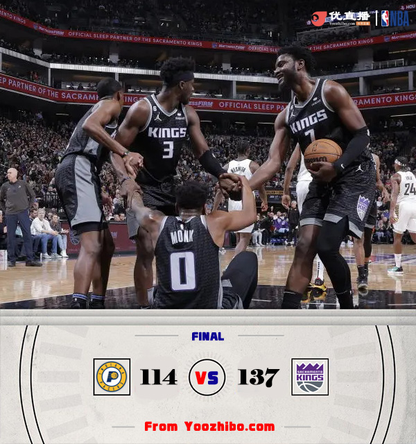 JRS直播网112月1日讯 NBA常规赛,国王今日迎战步行者,前者三连败后暂列西部第六位,后者上场比赛则是绝杀湖人排名东部第四,此役双方不少球员都是面对旧主。比赛上来,双方短暂拉锯后国王开始发力取得领先,分差也是拉开到了两位数,次节两队展开拉锯,分差并没有发生变化,半场结束时步行者落后14分;下半场双方展开对攻,但国王明显占据了上风,单节狂砍44分将分差继续扩大到二十分以上,之后的比赛步行者没有再获得任何机会,最终国王大胜步行者结束三连败。