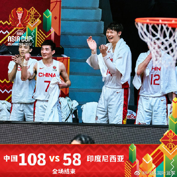 JRS直播网7月18日讯 男篮亚洲杯1/4决赛资格赛,中国男篮今日对阵印度尼西亚,本场的胜者将进入八强,败者则直接被淘汰。比赛上来中国男篮就占据了场上的绝对主动,分差被迅速拉开到了两位数,次节印尼依旧没能找到解决问题的办法,半场结束时分差已经达到了38分。易边再战,中国男篮的防守略有松懈让对手单节拿到23分,不过末节中国队凭借着14-0的攻势还是将分差扩大到四十分以上,最终中国男篮大胜印尼进入八强。