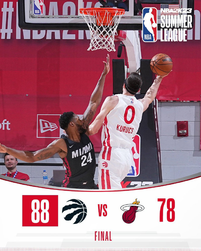 JRS直播网讯7月16日讯 NBA拉斯维加斯夏季联赛继续进行,热火对阵猛龙,热火的约维奇和罗宾逊,猛龙的科洛克都值得人们关注一下。开局双方虽然命中率不高,但比分一直很胶着,热火抓住机会建立领先,但猛龙马上回应小高潮反超了2分,次节热火陷入得分荒,布鲁克斯外线手感火热接连扔进三分帮助猛龙直接拉开双位数分差。第三节,热火进攻端还是找不到状态,单节只得到14分,猛龙越打越好将分差拉开至20分以上,末节风云突变,热火终于找回手感,接连打出小高潮一度追到差5分,但猛龙及时止血稳住优势,最终猛龙力克热火。