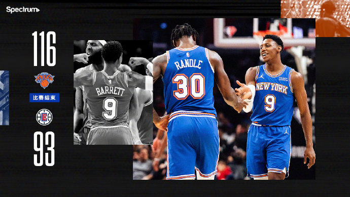 JRS直播网3月7日讯 5连胜的快船今日坐镇主场迎战7连败的尼克斯,首节之争尼克斯凭借伯克斯的两记三分率先发难抢得主动权,而主场作战的快船反倒一路被动扮演追分角色,尼克斯一直没有受到威胁并一路占据上风,次节快船突然哑火导致崩盘,尼克斯一改首节策略选择冲击内线,而这一次以巴雷特连拿8分为首轰出一波16-0的攻势,这波攻势帮助他们一举确立起19分的领先,面对快船后半节的回暖,巴雷特继续高效进攻并在这一节拿下16分,尼克斯带着19分优势进去下半场。下半场之争尼克斯一度拿到20分以上的领先,不过他们后半节熄火给了快船追分机会,而后者也用一波14-2的攻势将劣势缩小至12分看到希望,然而第四节开局快船又一次哑火上演“自爆”,尼克斯这边雷迪什成为奇兵连拿8分,尼克斯又是一波10-0的攻势将分差扩大至20分以上奠定胜局。最终,尼克斯客场力克快船结束7连败,同时也终结了快船5连胜。