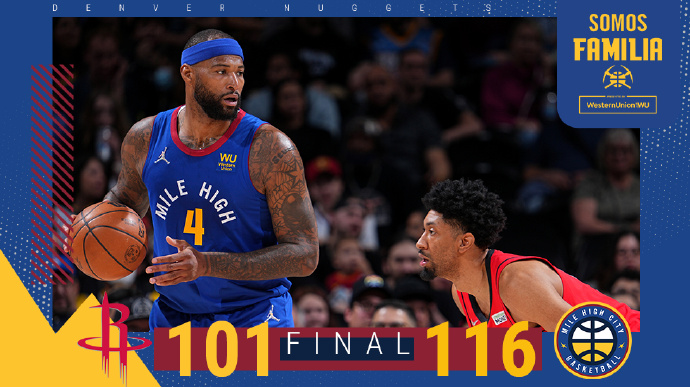 JRS直播网3月5日讯 NBA常规赛继续进行,掘金主场迎战火箭,掘金目前36胜26负排在西部第6位,火箭则是又经历一波11连败继续西部垫底,本场比赛约基奇因生病缺战。开局考辛斯状态不错里突外投帮助掘金迅速建立领先,但火箭一群年轻球员靠冲劲也能咬住比分,萨古最后上来连续打成帮助火箭领先1分,次节掘金替补纷纷站出来,海兰德和贾马考-格林相继成为奇兵帮助掘金重新掌握比赛主动权,但最后2分多钟掘金一分未得,被火箭抓住机会打出10-0攻击波重新追到5分分差。第三节,考辛斯继续自己的火热状态里突外投连续取分帮助掘金牢牢掌握住十几分领先,面对火箭的追分球掘金总能给出回应,末节掘金始终保持着双位数领先,火箭后半节外线手感也一般,分差始终没有被缩小,最终掘金击退火箭,送对手12连败。