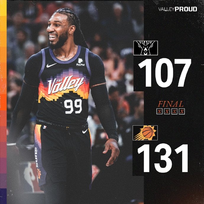 JRS直播网2月11日讯 NBA常规赛,太阳今日迎战雄鹿,前者三连胜后继续高居联盟榜首,后者同样是取得四连胜暂列东部第二位。比赛上来太阳进入状态较快,一波6-0完美开局,不过雄鹿随后就将比分追了上来,两队在很长的时间里都保持拉锯,次节雄鹿的命中率开始下降,尤其是在节末被太阳再次打出攻势拉开分差,半场结束时雄鹿落后8分。易边再战,太阳已经完成占据了场上的主动,分差也在末节突破了二十分,比赛彻底失去悬念,最终太阳大胜雄鹿,迎来四连胜的同时也终结了后者的四连胜。
