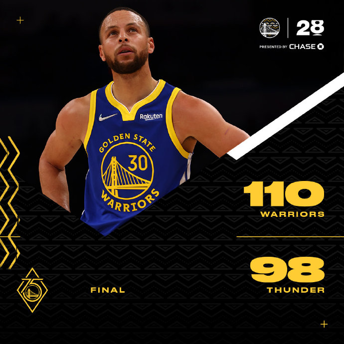勇士(41-13):库里18分9篮板10助攻,克莱21分2篮板2助攻,维金斯15分5篮板,库明加16分4篮板4助攻,卢尼8分7篮板,普尔11分8篮板8助攻2抢断,佩顿5分2篮板,伊戈达拉3分3篮板。