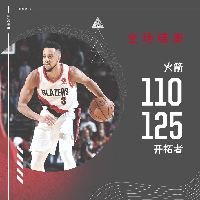 开拓者(21-28):西蒙斯27分3篮板6助攻,麦科勒姆26分3篮板5助攻,努尔基奇25分13篮板,鲍威尔16分5篮板3抢断,考文顿13分5篮板2抢断,麦克勒摩12分,沃特福德6分2篮板3助攻。