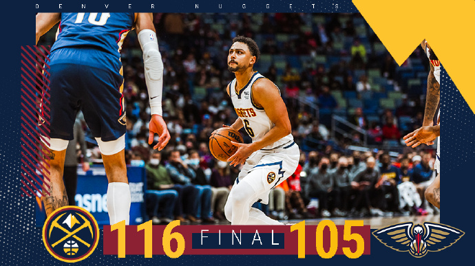 JRS直播网1月29日讯 NBA常规赛继续进行,鹈鹕主场迎战掘金,鹈鹕母亲18胜29负排名西部第11,而掘金则是一波3连胜,26胜21负排在西部第6位。首节格拉汉姆状态不错里突外投帮助鹈鹕打出不错开局,但之后进攻端突然断电,被约基奇和戈登联手打出进攻高潮帮助掘金领先了9分,次节鹈鹕上来接连攻击内线打出小高潮一度反超比分,但掘金通过出色的外线手感迅速回应并能保持住微弱领先优势。第三节,双方上来展开胶着拉锯战,比分多次打平,但掘金又依靠外线手感接连扔进三分再次掌握住8分领先,末节鹈鹕上来又陷入得分荒,掘金抓住机会接连扔进中远投一度领先到16分,但鹈鹕没有放弃,接连通过造杀伤续命,但约基奇站出来连得6分直接带走比赛,最终掘金力克鹈鹕,拿到4连胜。