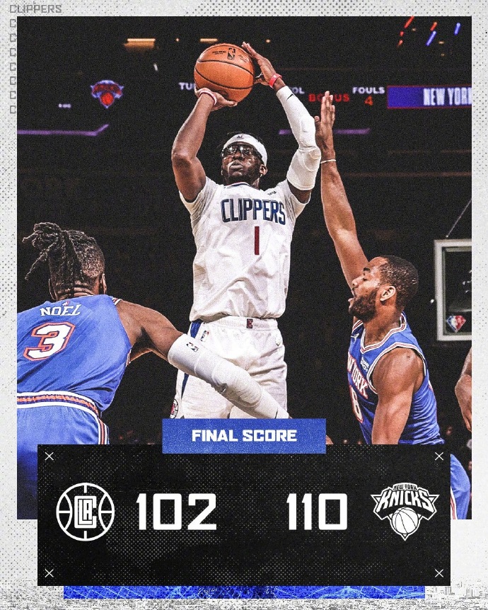 JRS直播网1月24日讯 NBA常规赛继续进行,尼克斯主场迎战快船,尼克斯本赛季状态堪忧,目前又是3连败目前排名东部第11位,而快船虽然缺少两大主力,但依然排在西部第8位,本场比赛沃克因伤缺席。开局尼克斯上来就手感火热接连在外线发炮建立领先,而快船则是从内线打起追分,后半节双方相继在外线下起三分雨,尼克斯更胜一筹领先了8分,次节双方手感都有回落,尼克斯先打出小高潮领先到双位数,而雷吉也找到手感带领快船连续打出两波进攻高潮追近至5分分差。第三节,双方命中率还是不高,快船更是上来就陷入得分荒,尼克斯抓住机会重新领先到双位数,雷吉和兰德尔也展开对攻,尼克斯凭借外线三分稳住双位数领先优势,末节雷吉带领快船多次试图掀起反攻,但尼克斯今天火热的外线手感始终能给出回应,分差也一直保持在10分左右,最终尼克斯主场力克快船,终止自己的3连败。