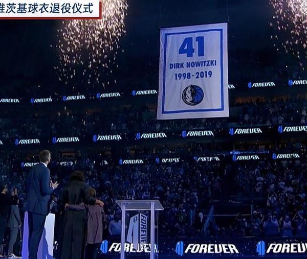 仪式最后,诺维茨基和妻子、三个孩子共同按下按钮,巨大的41号球衣缓缓升空,与12号球衣(哈珀)、15球衣(布拉德·戴维斯)、22号球衣(布莱克曼)一同成为达拉斯球迷永远的美好记忆。