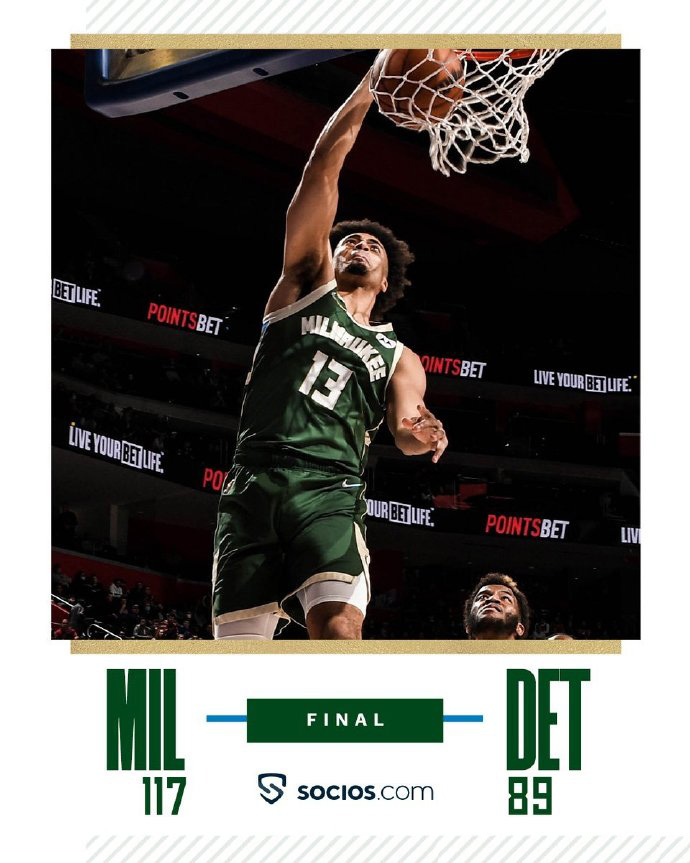 JRS直播网11月3日讯 NBA常规赛继续进行,活塞主场迎战雄鹿,活塞打了6场只有康宁汉姆首秀那场取得胜利,排名东部垫底;而雄鹿最近由于大洛和霍勒迪的伤停经历3连败,排名也掉到东部第11。开局活塞格兰特率先找到外线手感,但字母哥马上带领雄鹿回应一波小高潮并取得领先,后半节双方命中率下降后,雄鹿还是依靠外线领先了7分,次节开局活塞依靠替补将分差追近至2分,但康诺顿站出来连续外线扔进三分为雄鹿止血,末段字母哥又连续助攻队友一波小高潮领先到18分。第三节,字母哥里突外投阻挡不了带领雄鹿将分差拉开至20分,活塞外线不开追分始终不解渴,末段沃拉也连续突内线上篮,雄鹿将分差拉开至28分,末节字母哥上来就带领雄鹿将分差拉开至30分以上,随后比赛失去悬念成为练兵时间,最终雄鹿大胜活塞,终止自己的3连败。