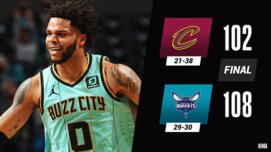JRS直播网4月24日讯 NBA常规赛,黄蜂主场迎战骑士。不敌缺少拉文的公牛之后,饱受伤病困扰的黄蜂近7场已输掉6场,排名也下滑到了东部第八,而骑士则刚刚战胜公牛结束连败,目前是排在东部倒数第三。一开场,骑士内外开花取得领先,但失误不断。黄蜂逐渐找到状态,进攻效率不断提升,内线连续打成帮助球队领先2分结束首节。次节比赛,骑士充分发挥内线优势频频取分,一度拉开10分分差,黄蜂连中三分缩小差距,骑士55-48领先7分进入下半场。易边再战,黄蜂连续命中三个三分缩小分差,骑士命中率下降,第三节结束两队战成78平。末节争夺,两队打得难解难分,比分交替领先,布里奇斯连拿7分杀死比赛。最终,黄蜂主场力克骑士,结束两连败。