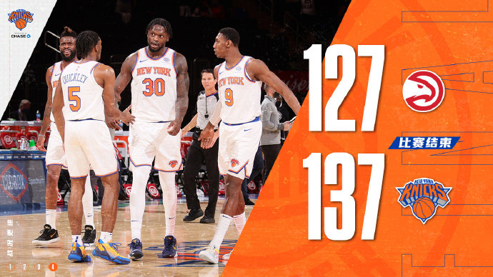 JRS直播网4月22日讯 豪取7连胜的尼克斯今日坐镇主场迎战老鹰,老鹰最近6场比赛拿下5场状态同样出色。首节之争两支球队状态火热上演飙分大战,兰德尔首节拿下11分表现出彩,奈何老鹰阵中特雷-杨状态更热,后者单节16分5助攻的表现帮助球队笑傲首节,次节争夺尼克斯疯狂追分多次扭转局势,不过老鹰这边角色球员也有出色表现,节末许尔特内外开花拿下7分帮助老鹰反超2分结束上半场。下半场老鹰几乎领先了大部分的时间却在最后时刻丢掉主动权,奎克利连中两记三分带队打出15-0的攻势一举反超比分,最后时刻老鹰自我救赎,依靠科林斯和博格达诺维奇两记三分将比赛拖入加时。加时赛尼克斯没有再给对手机会,兰德尔和布洛克两记三分带队打出10-0的开局早早奠定胜局。最终,尼克斯主场力擒老鹰豪取8连胜。