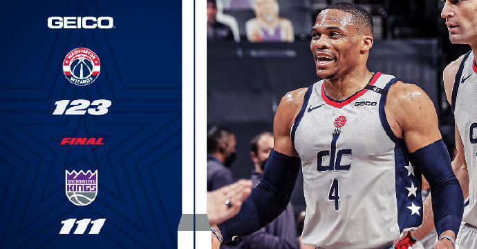 奇才(21-33):比尔31分4篮板3助攻1断,威少25分15篮板11助攻4断,贝尔坦斯16分4篮板2助攻,八村塁12分4篮板2断,阿夫迪亚11分4篮板,莱恩8分10篮板,罗宾-洛佩兹6分5篮板,伊斯梅尔10分3篮板3助攻。
