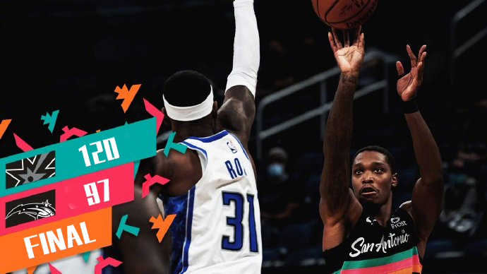 JRS直播网4月13日讯 马刺继续自己5连客之旅,在刚刚绝杀独行侠之后,他们马不停蹄的赶往奥兰多挑战魔术。首节之争魔术在开局取得9-3领先的情况下莫名哑火,前5分钟里拿到13分但后7分钟里仅依靠罚球拿到3分,这期间的12次出手全部打铁并投丢了4次罚球,马刺开局慢热的情况却收获大礼,后程发力的他们用一波21-3的攻势反超12分。次节魔术进攻端虽然有所回暖但防守端完全无法阻止对手,这一节马刺再胜11分并在半场就取得23分的领先。下半场争夺手握大比分领先的马刺牢牢控制比赛,他们牢牢控制着20分以上的领先完全不给对手机会。最终,马刺客场大胜魔术迎来两连胜。